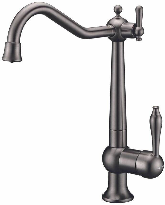 Смеситель для кухни с подключением к фильтру питьевой воды Paulmark RETRO, высокий поворотный излив ретро дизайна из латуни, двурычажный, для мойки / столешницы, антрацит, Re213226-401