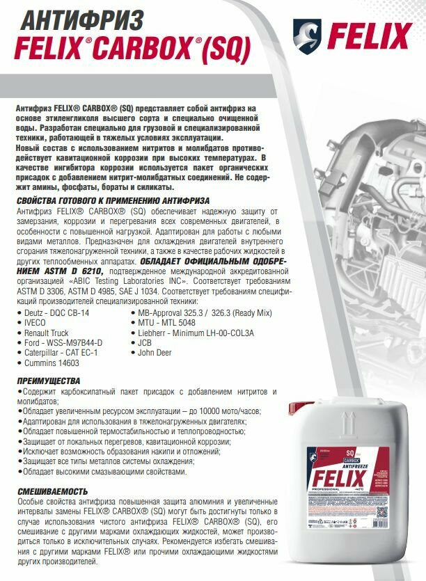 Антифриз 5кг - Антифриз Красный G12+. Astm D 3306, Astm D 4985, Astm D 6210, Ksm 2142, Bs 6580, Sae J 1034, Jis K 2234. Felix... 1 040 ₽ Подробнее