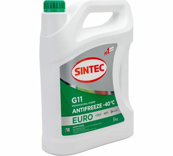 Sintec Антифриз Euro G11 (-40) зеленый 5,5 кг, 500г в , гибридный, силикатный 800554 .