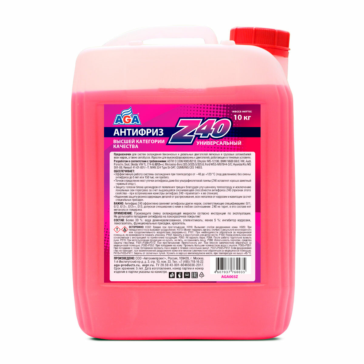 Охлаждающая жидкость Антифриз AGA Z40 красный G12++ (9.46 л/10 кг) AGA003Z