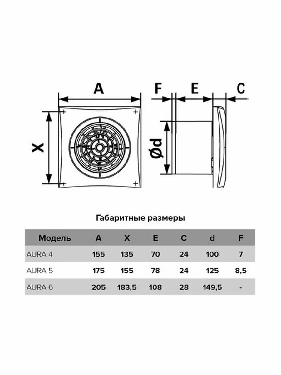 AURA 5C вентилятор вытяжной c обратным клапаном на шарикоподшипниках D125