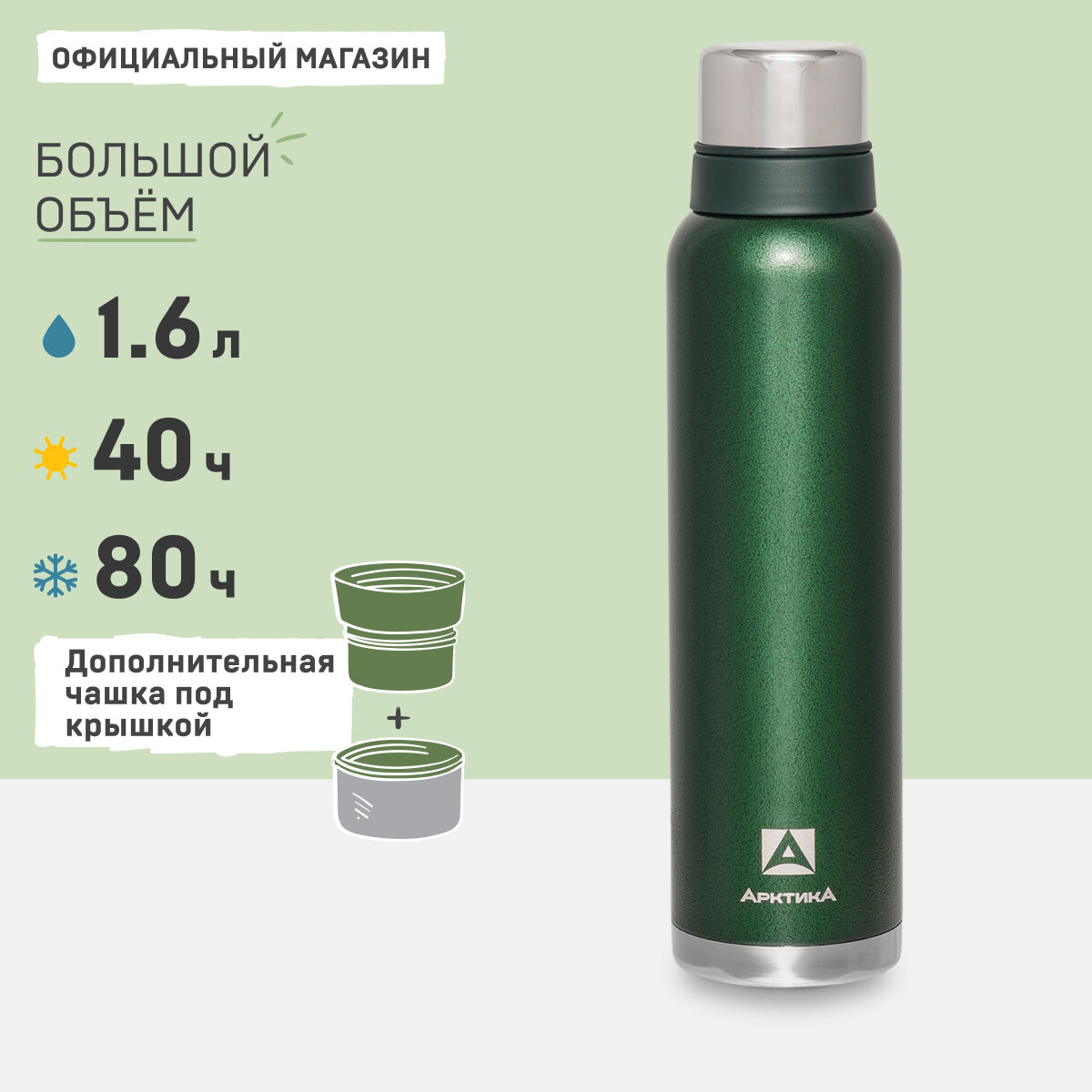 Термос Арктика 106-1600, 1600 мл, зелёный 3 560 ₽ Подробнее