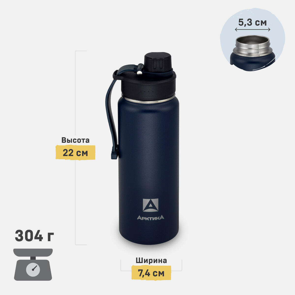 Термос Термобутылка для воды Арктика 708-530 синий матовый 0,53 литров термос для напитков спортивный с двумя крышками