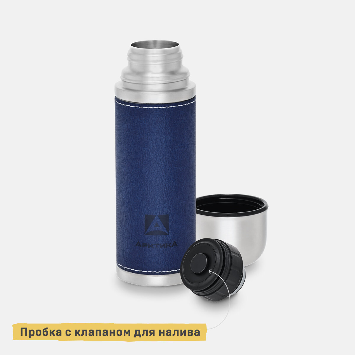 Ark-108-700-Синий -Кожа Термос бытовой, вакуумный, питьевой, тм "Арктика", 700 мл, 2 437 ₽ Подробнее
