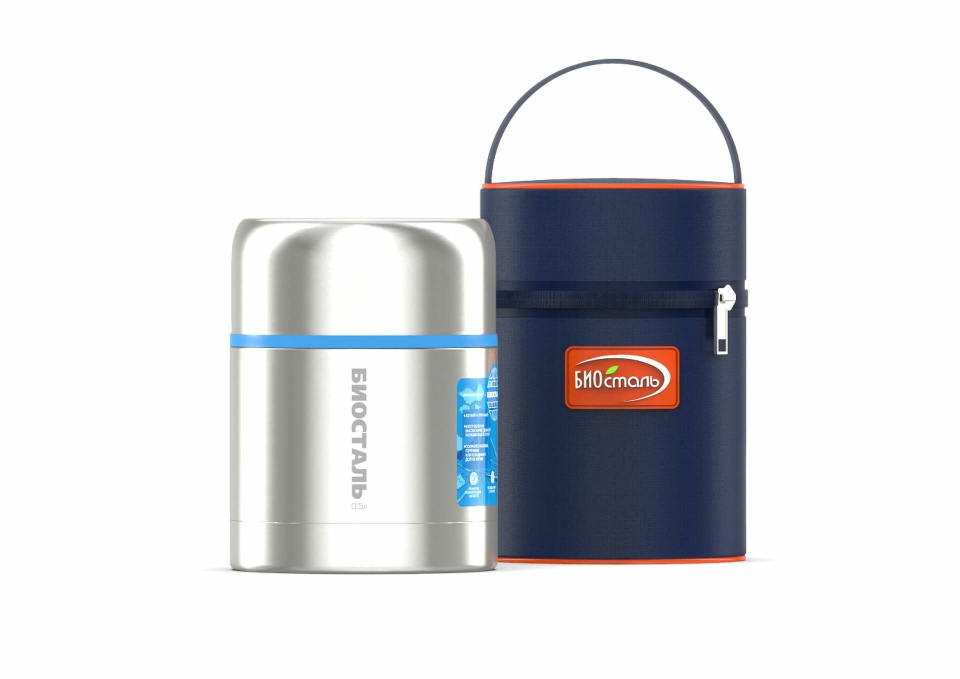 Термос Термос биосталь-авто с широким горлом, суповой, С термочехлом, 0,5л.