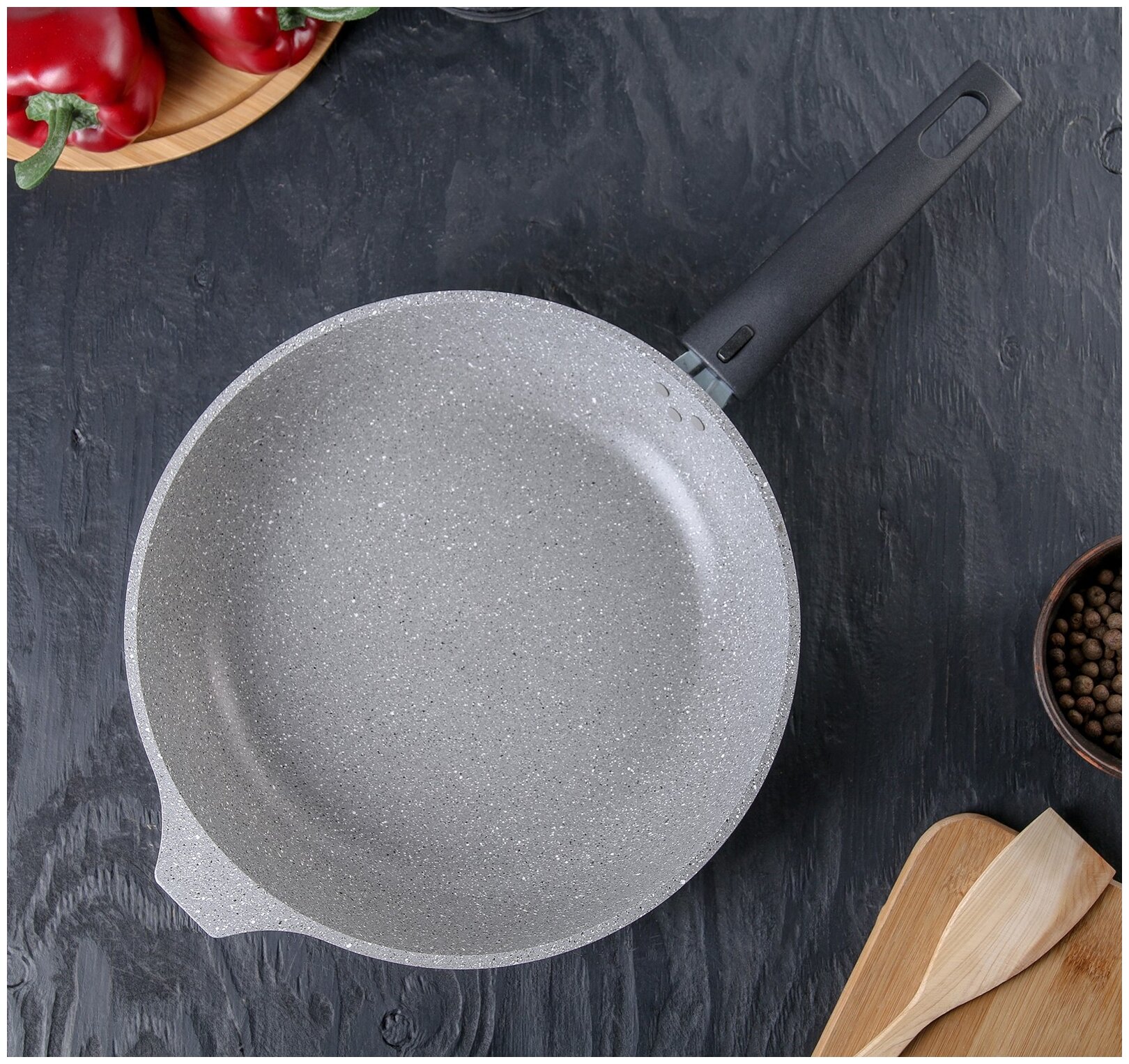 KUKMARA Сковорода, d26 см, съёмная ручка, антипригарное покрытие, цвет тёмный мрамор