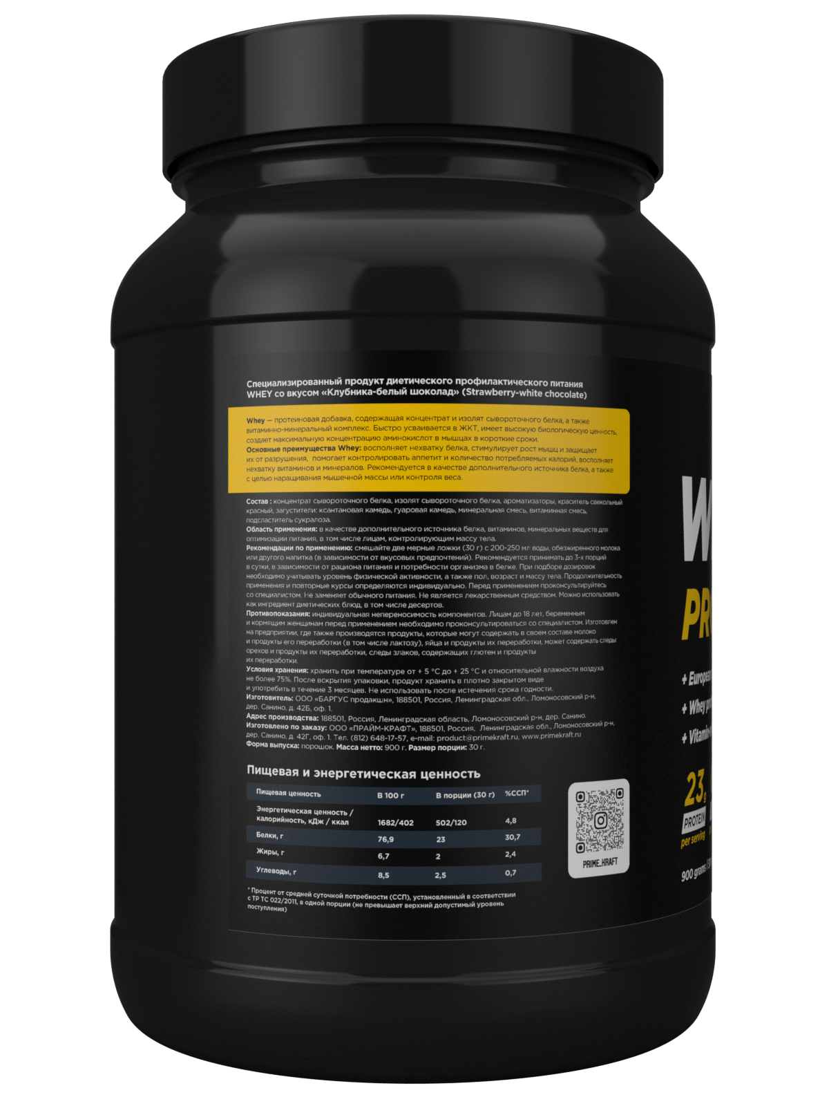 Протеин Сывороточный протеин Prime Kraft Whey Protein - 900 г, клубника-белый шоколад, банка