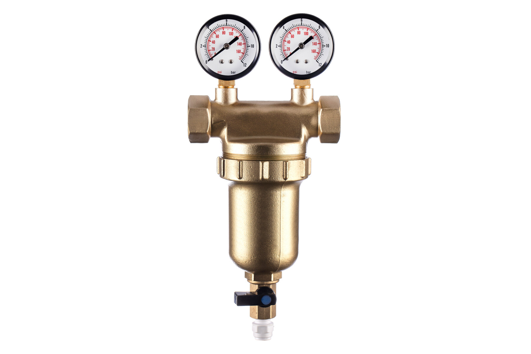 Фильтр 3/4, для горячей воды, с двумя манометрами, d76 Гейзер Бастион 7508145201 32685 .