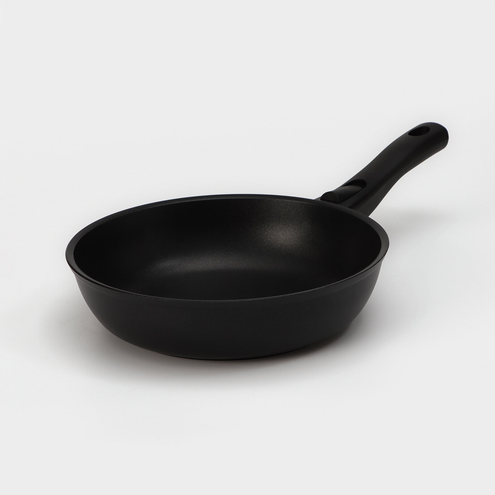Сковорода "Традиция", d=22 см, стеклянная крышка, съёмная ручка, антипригарное покрытие, цвет чёрный