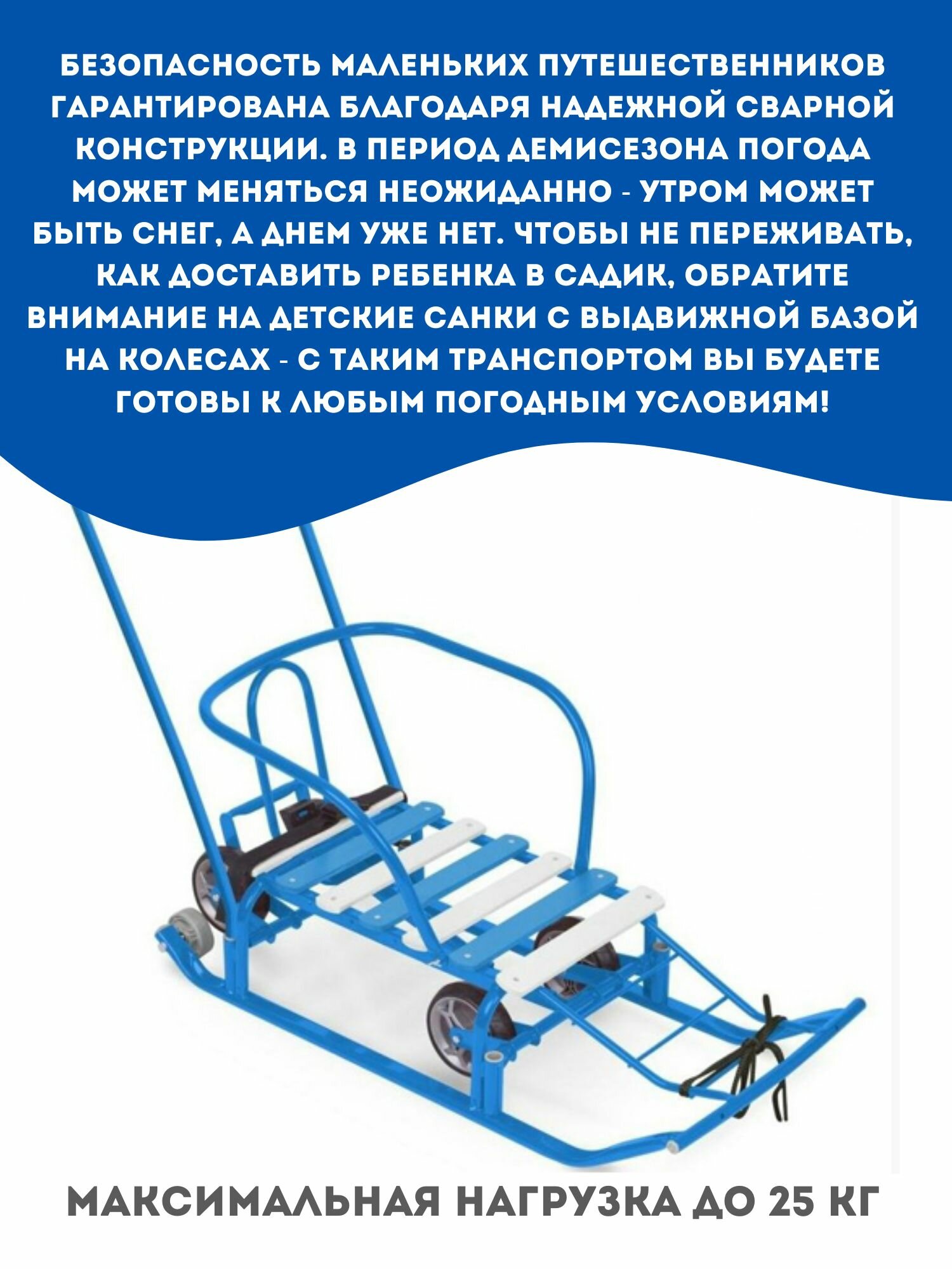 Санки детские Nika "Тимка 5 универсал", съемная ручка, выдвижные колеса, синий