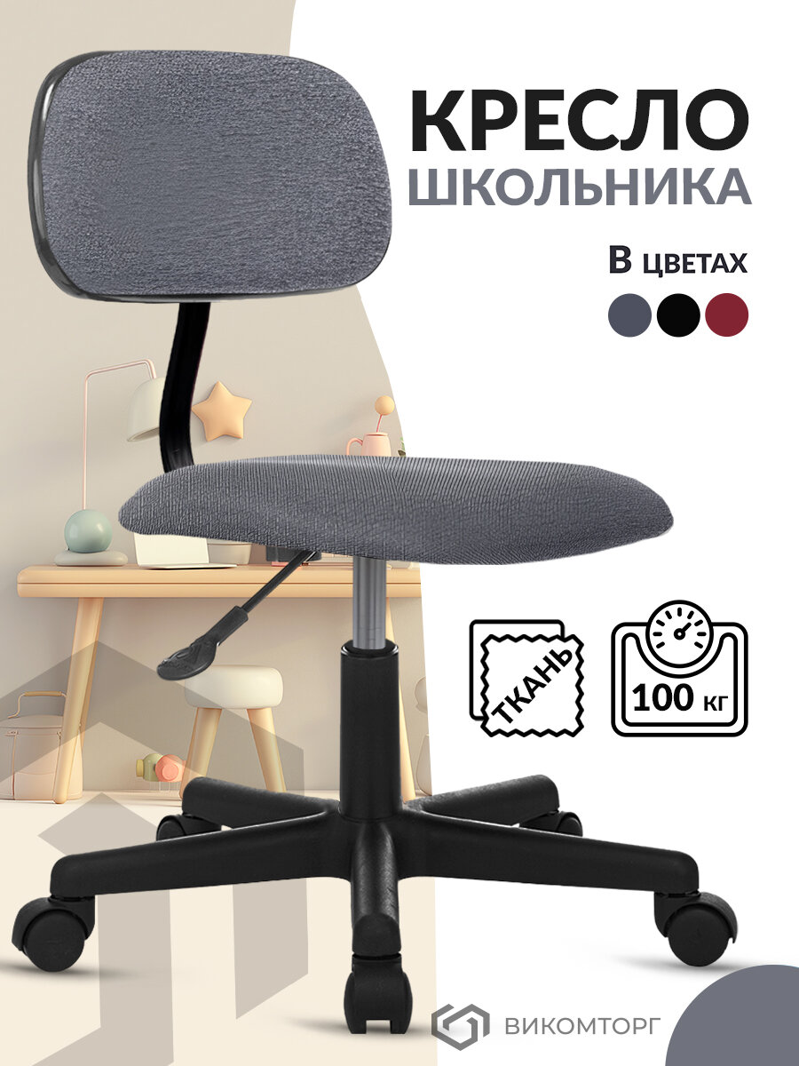 Компьютерные кресла Кресло детское на колесиках серое, ткань, крестовина пластик - Стул компьютерный для школьника Бюрократ