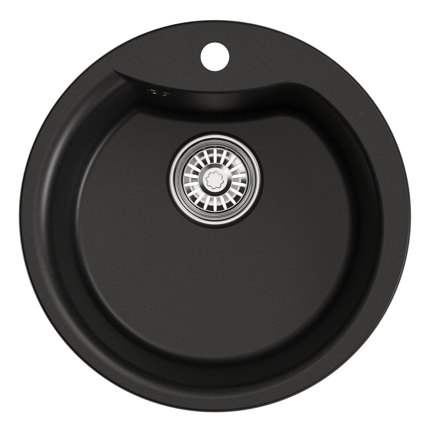Кухонная мойка Мойкa ML-GM12 круглая, ультра-черная (344), 480мм (глуб. чаши 210) NEW