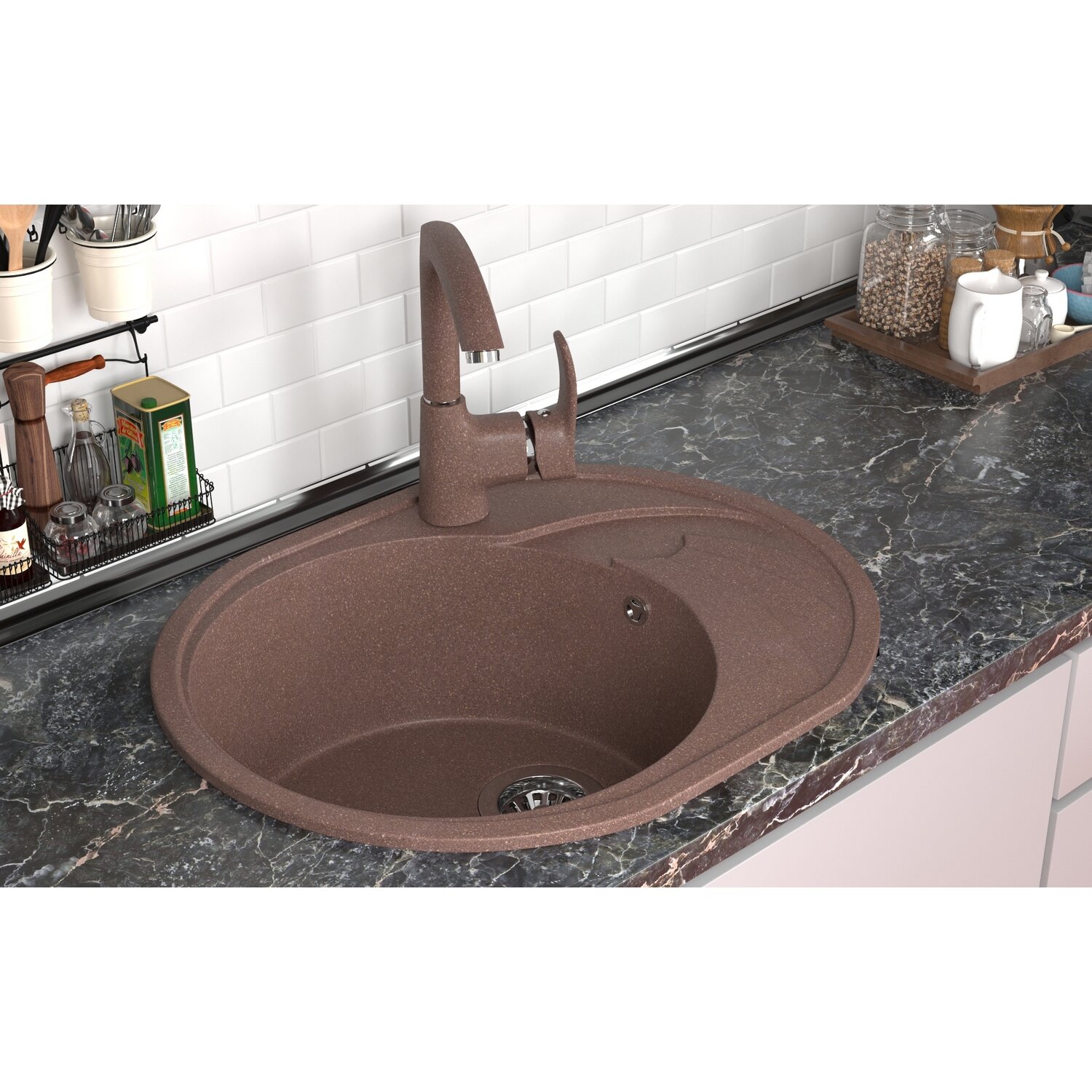Мойка для кухни из искусственного мрамора круглая MIXLINE ML-GM 10 с сифоном, песочная 6 915 ₽ Подробнее