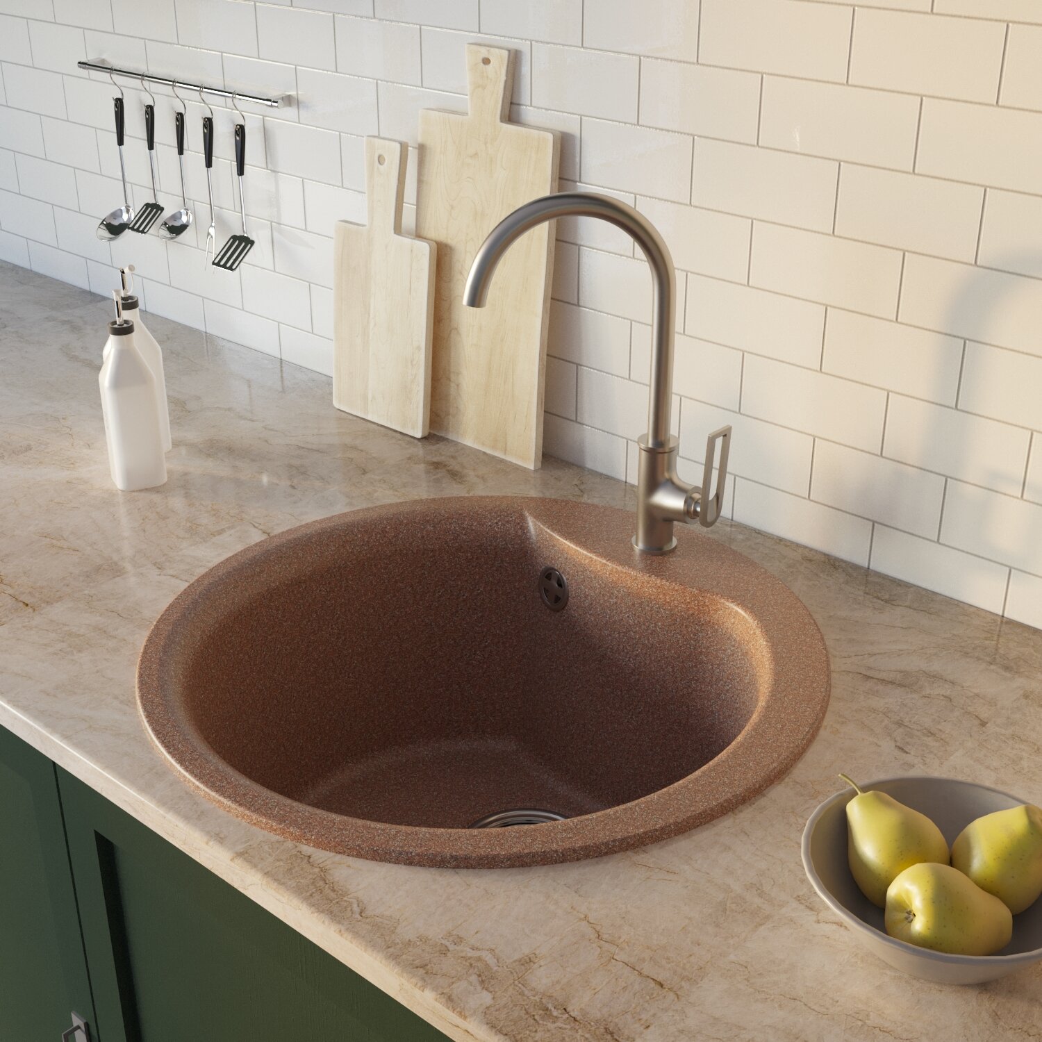 Мойка для кухни из искусственного мрамора круглая MIXLINE ML-GM 10 с сифоном, песочная 6 915 ₽ Подробнее