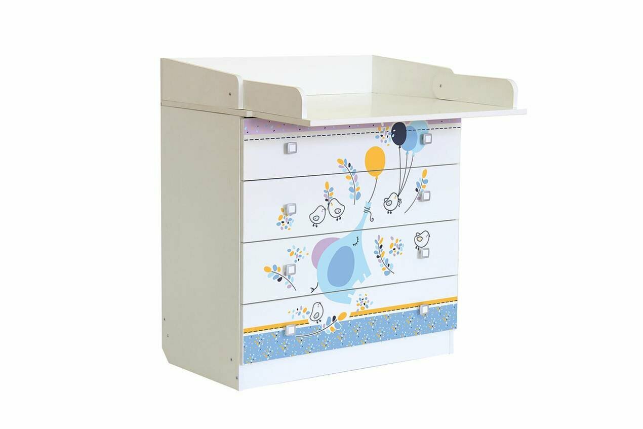 Фея Комод детский с пеленальным столиком 804 «Фея 1580», 4 выдвижных ящика, цвет белый