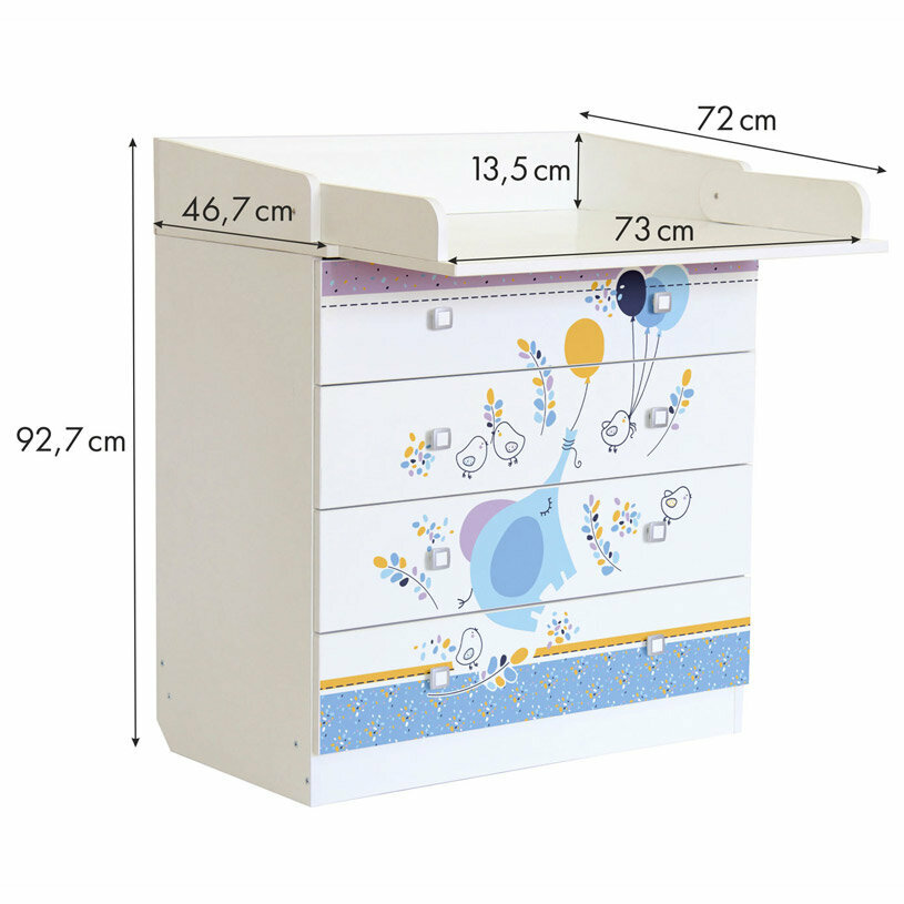 Комод детский с пеленальным столиком, 4 выдвижных ящика, цвет белый