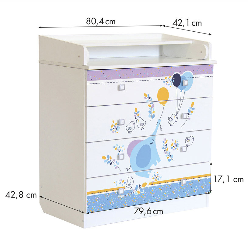 Комод детский с пеленальным столиком 804 «Фея 1580», 4 выдвижных ящика, цвет белый
