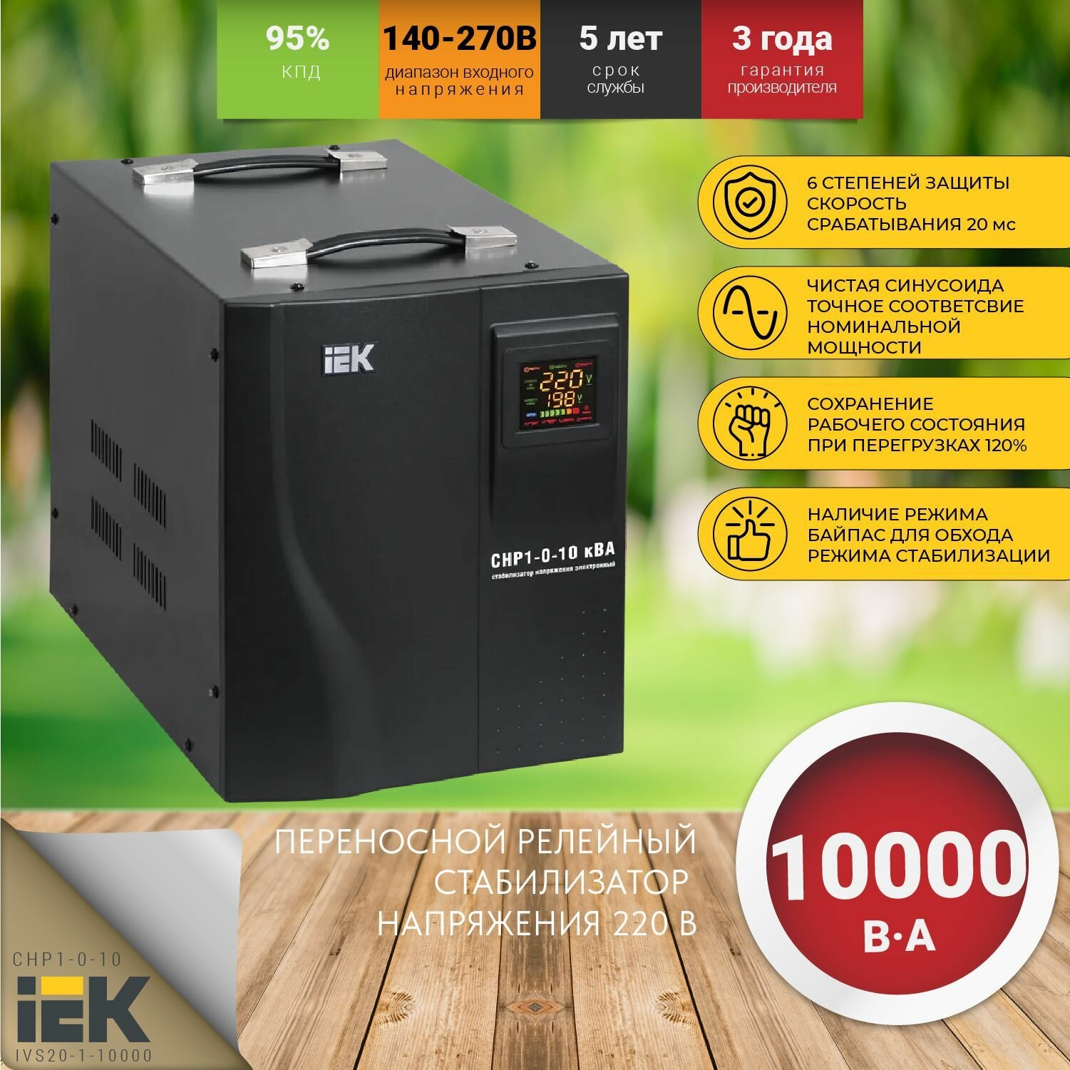 Стабилизатор напряжения HOME СНР 1/220 10кВА переносной IEK IVS20-1-10000 (1 шт)