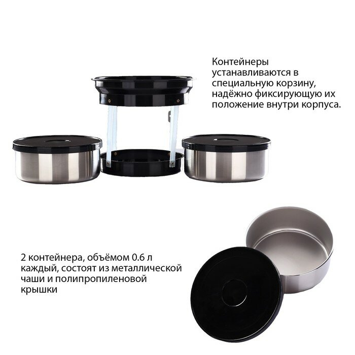 Термосы Термос для еды "Амет. Экспресс" 1с934, 2 л (2 контейнера х 0.6 л), 55 °С, 8 ч