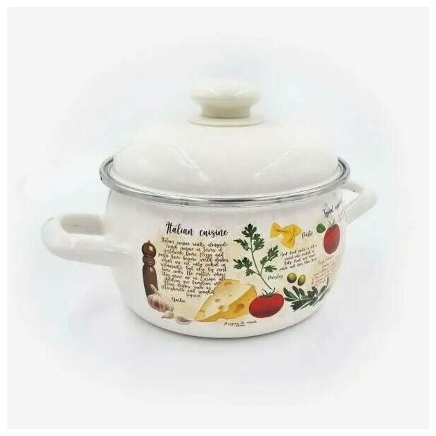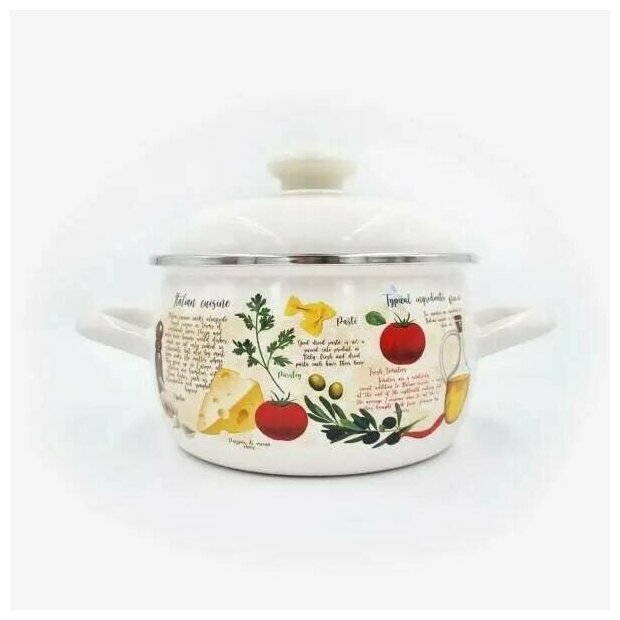 Кастрюля 2л эмалированная сферическая, металлическая крышка, рисунок Капрезе