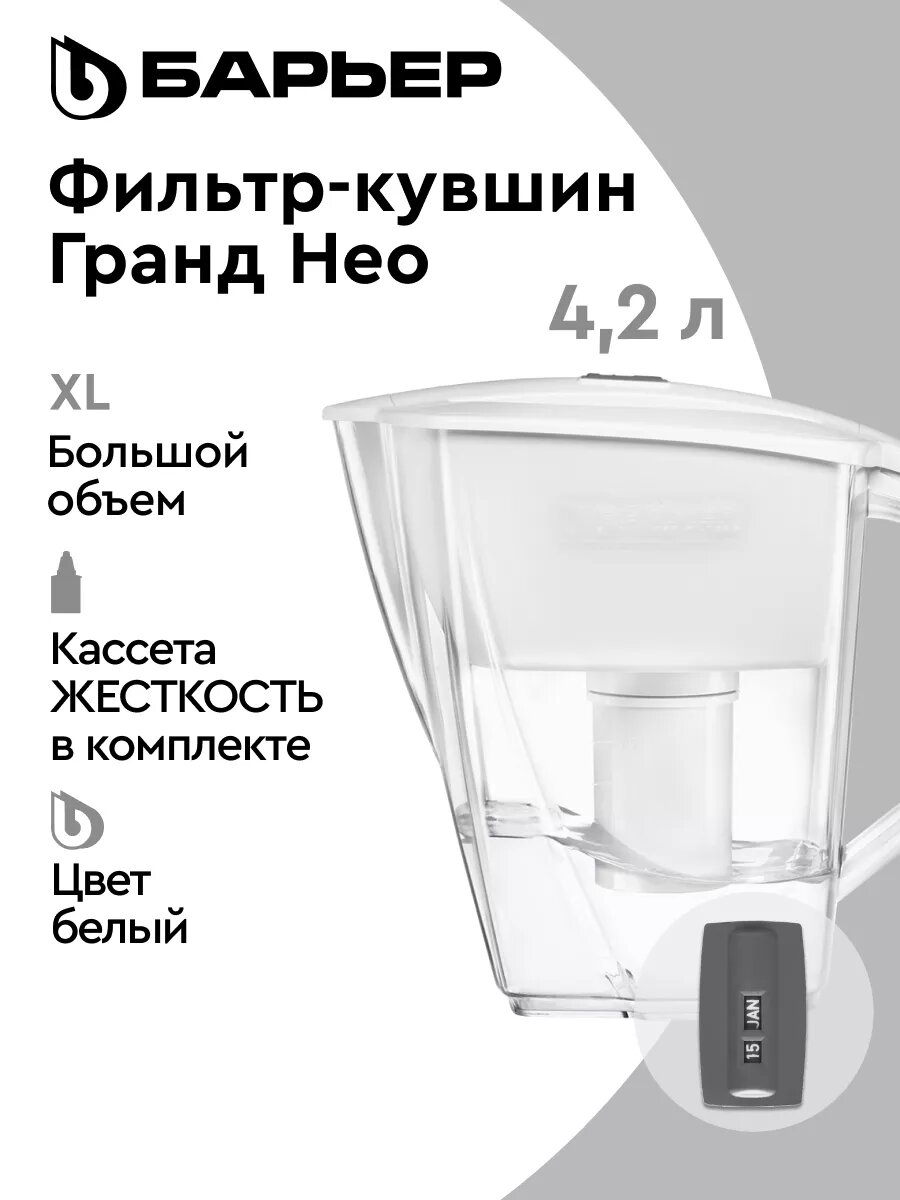 Фильтры для воды Фильтр-кувшин Барьер Гранд Нео 4.2л белый