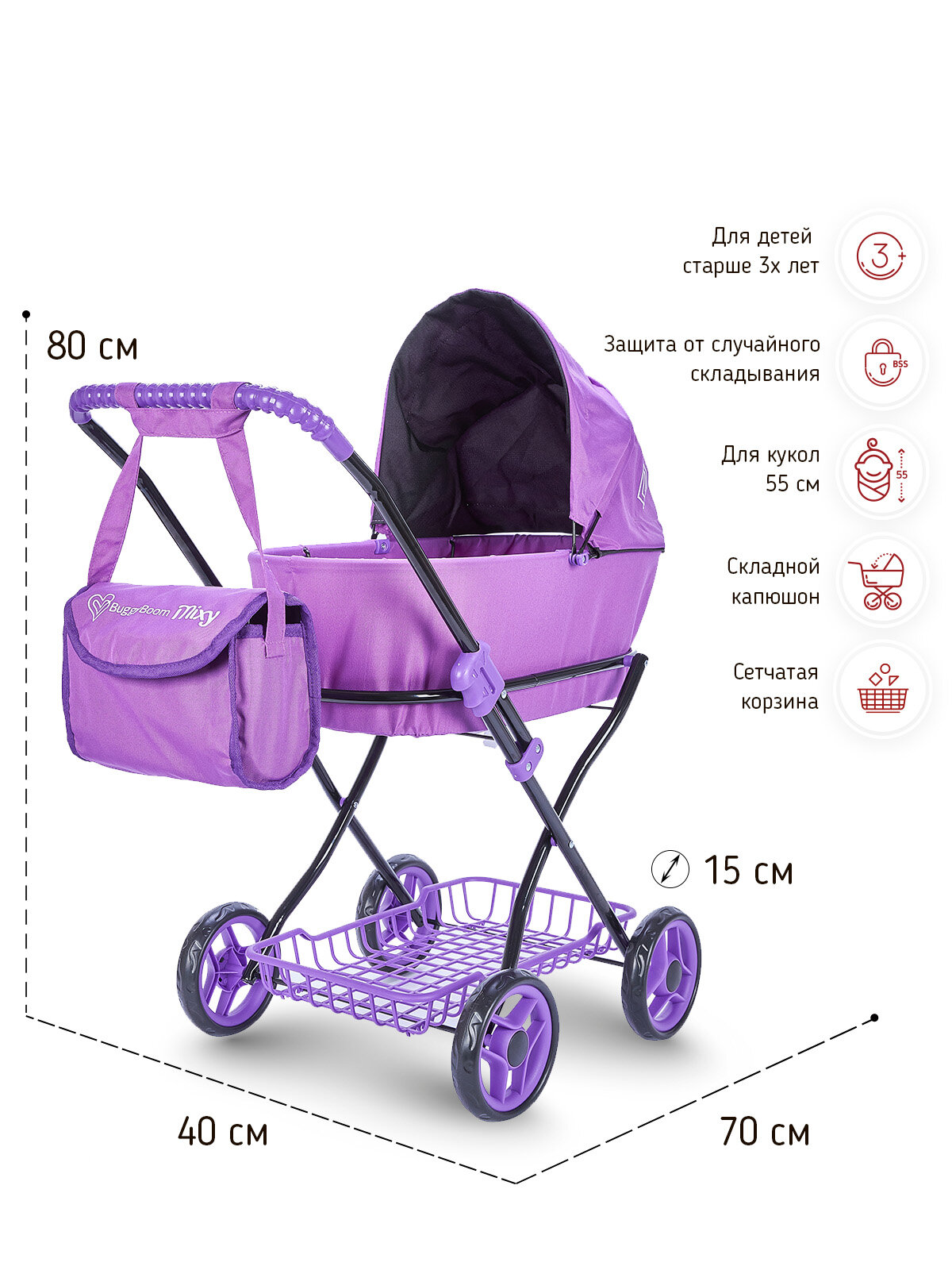 Коляска для кукол - классическая, с капюшоном и сумкой BUGGY BOOM 8019-M2010/СТ