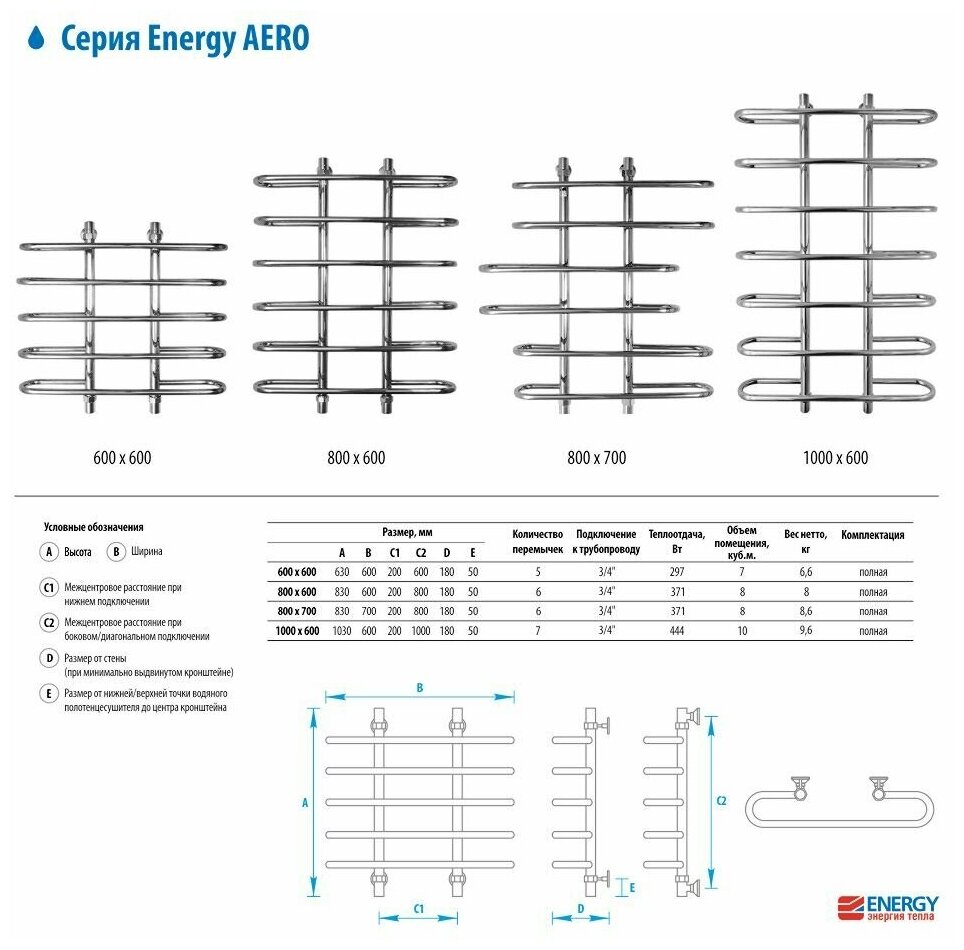 Полотенцесушитель водяной ENERGY AERO 1000х600 3/4"
