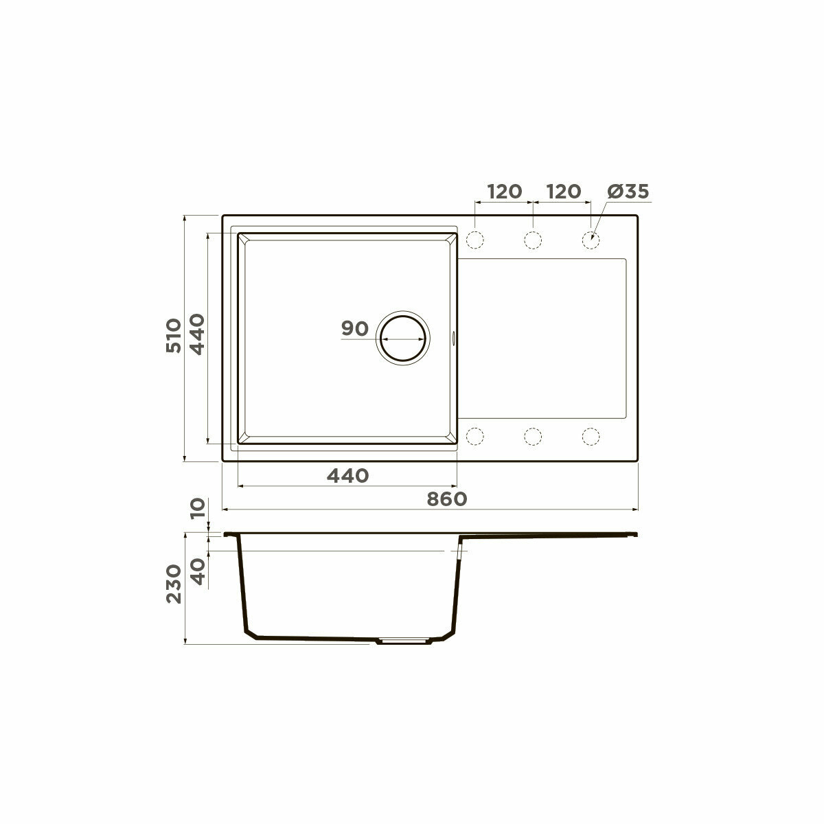 | Отверстие под смеситель | + |