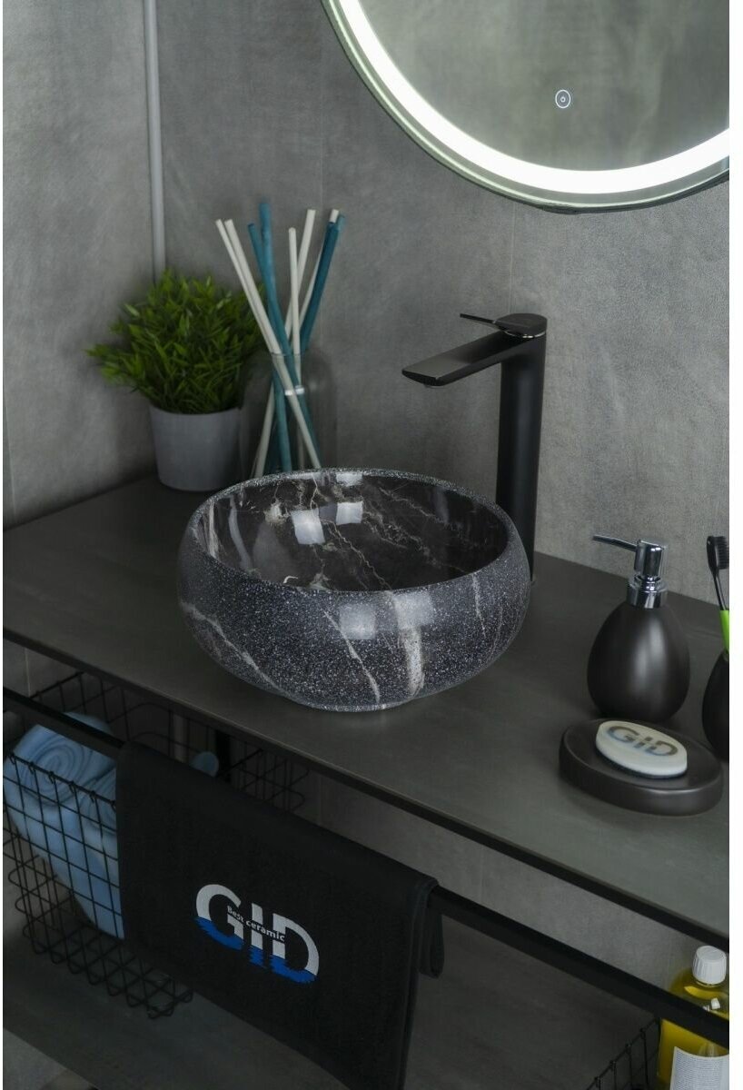 Керамическая раковина Gid Mnc480 с черным донным клапаном