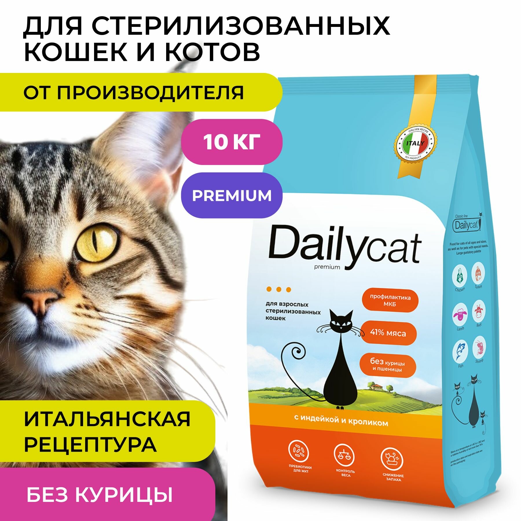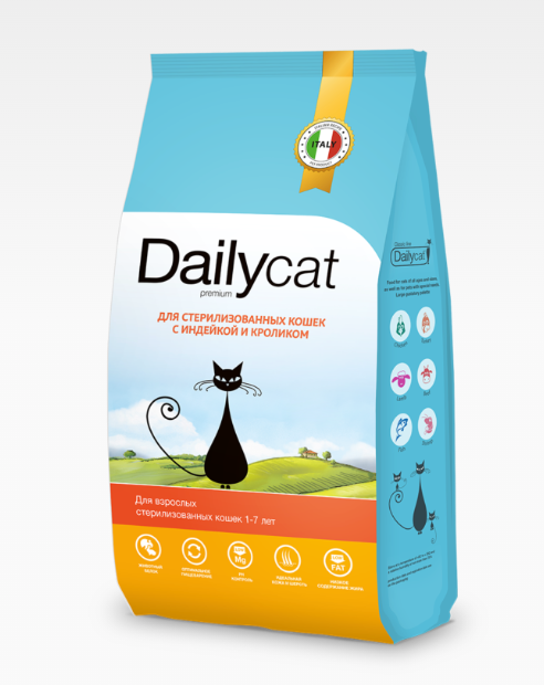 Сухой корм Dailyсat для стерилизованных кошек и котов, с индейкой, 1,5 кг