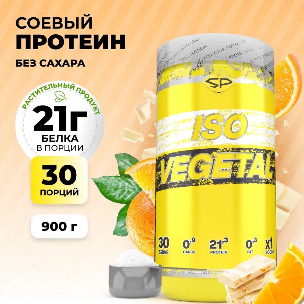 Протеин соевый изолят STEELPOWER растительный вегетарианский, без сахара ISO VEGETAL, 900 грамм, со вкусом Апельсиновое фондю