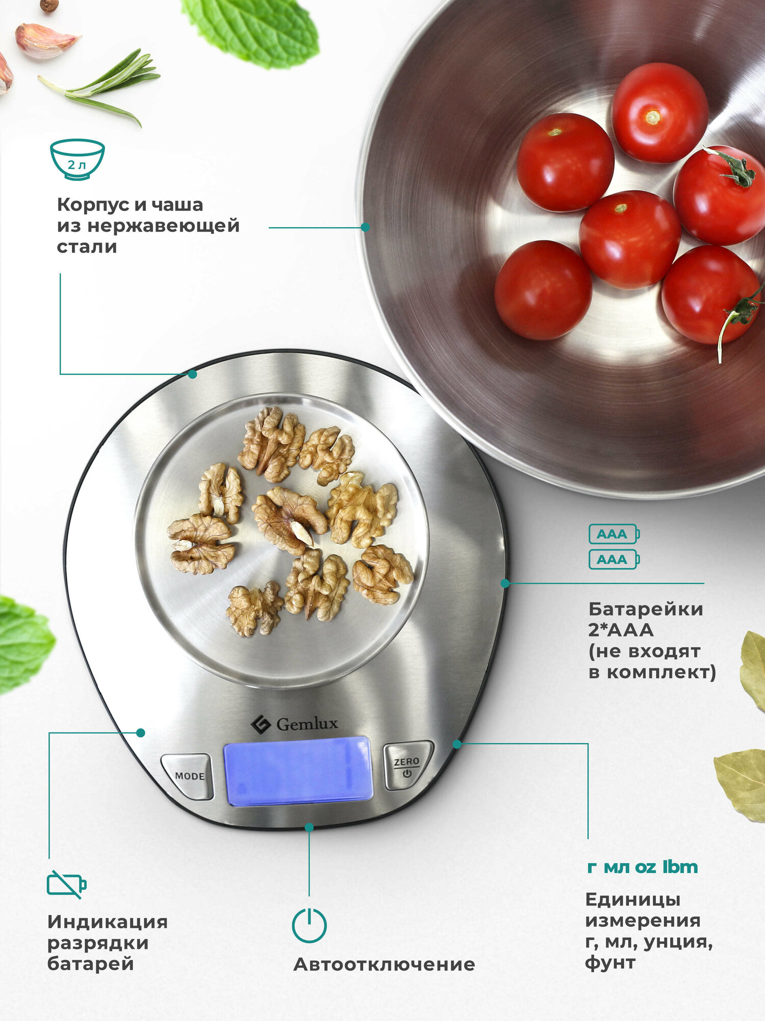 Весы Весы кухонные электронные настольные Gemlux GL-KS5SB, с чашей, до 5 кг, пищевые, кондитерские, для продуктов, точные, бытовая техника для кухни