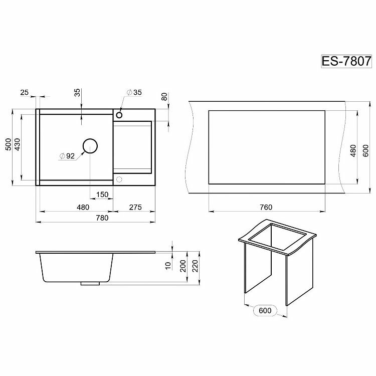 ES-7807, чёрный, кухонная мойка, кварц, ESTETICA 16 854 ₽ Подробнее