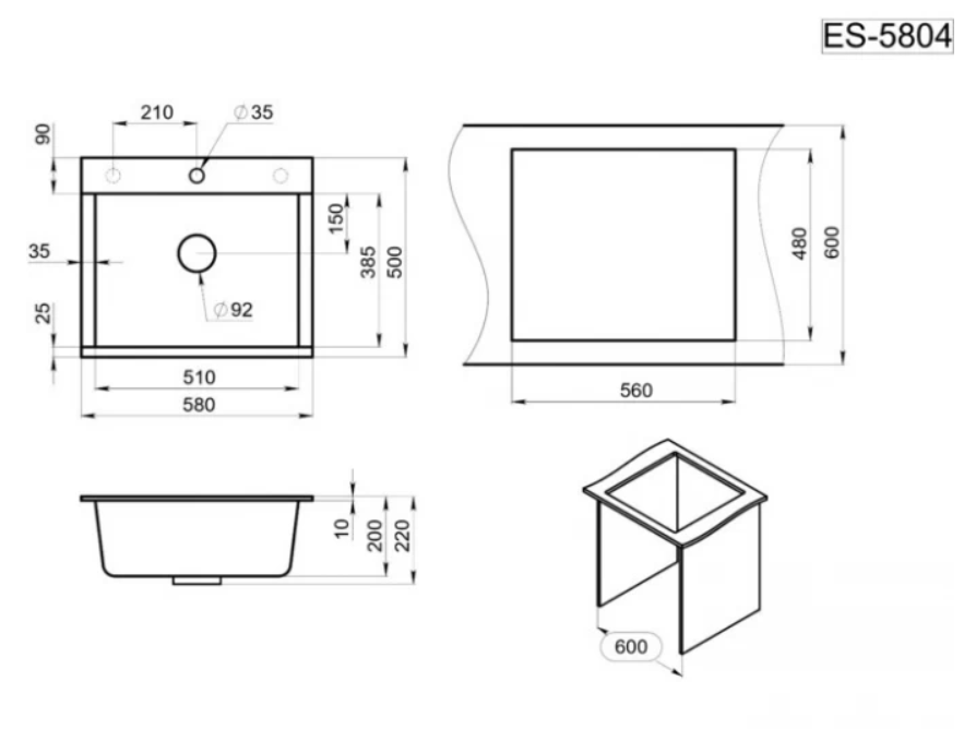 ES-5804, шварц (чёрный металлик), кухонная мойка, кварц, ESTETICA 14 094 ₽ Подробнее