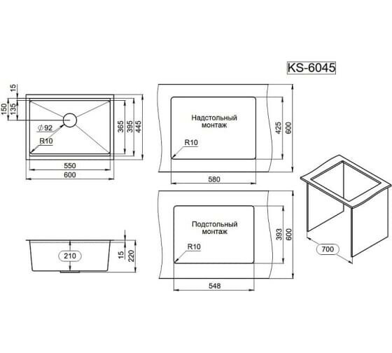 KS-6045U, сталь сатин, стальная кухонная мойка KITCHEN SPACE 27 600 ₽ Подробнее