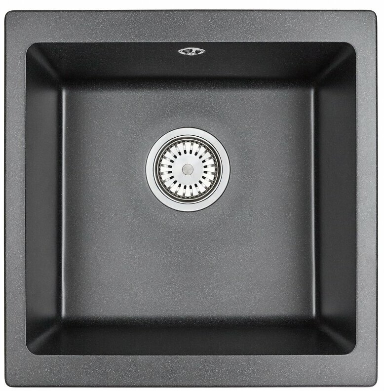 Мойка для кухни врезная кварц GRANULA 46x45x20 Кухонная раковина в комплекте с сифоном. Цвет черный