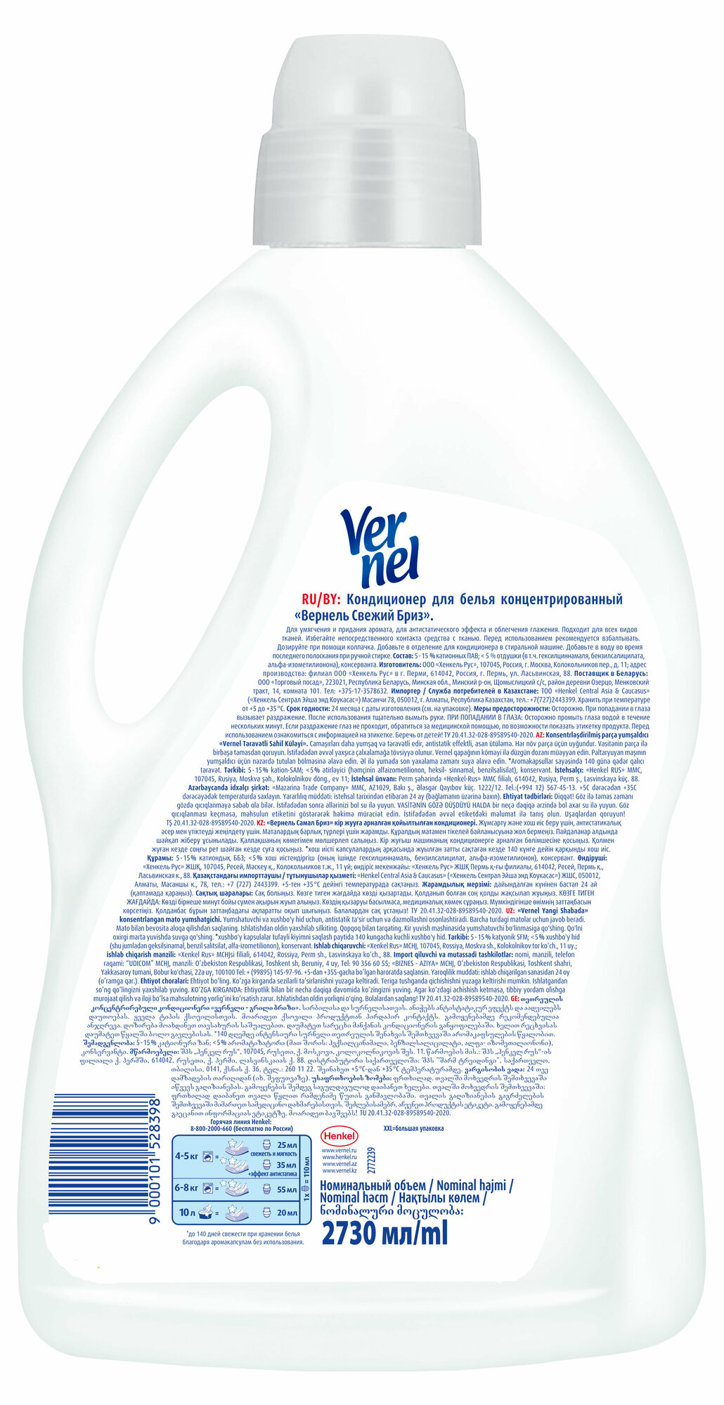 Кондиционеры Кондиционер для белья «Вернель» Свежий бриз, 2.73 л