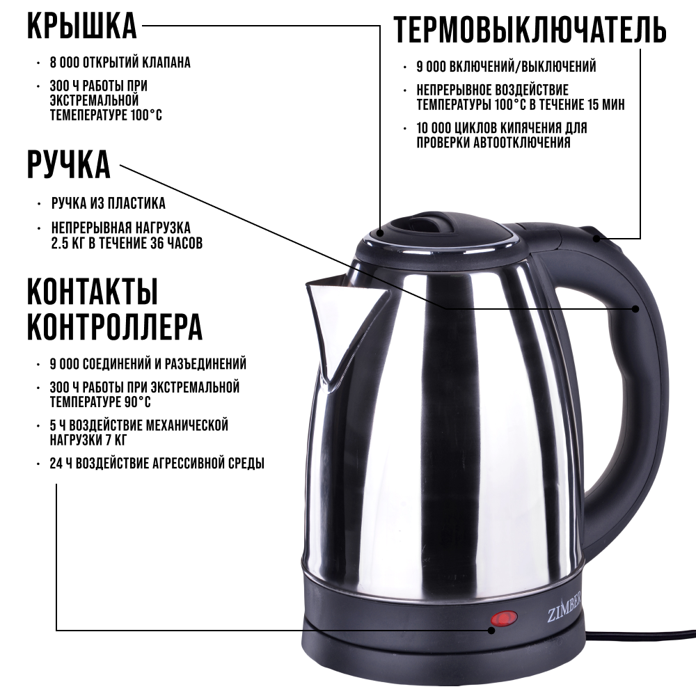 Чайник электрический нержавеющая сталь 1,8 л ZIMBER