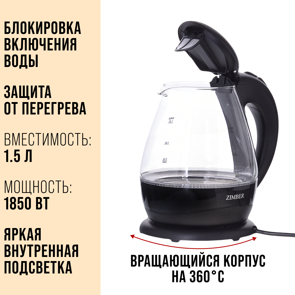 Электрический чайник обьемом 1,7 л с подсветкой ZIMBER 1 845 ₽ Подробнее