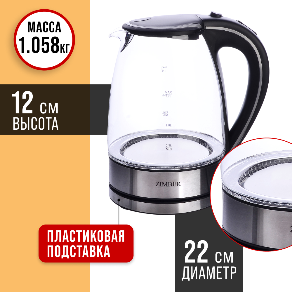 Электрочайник Чайник электрический 1,7 л с подсветкой ZIMBER