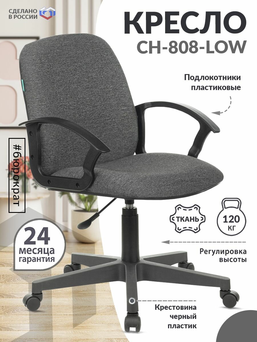 Кресло офисное CH-808-LOW серый, ткань / Компьютерное кресло для оператора, персонала, сотрудника, для дома