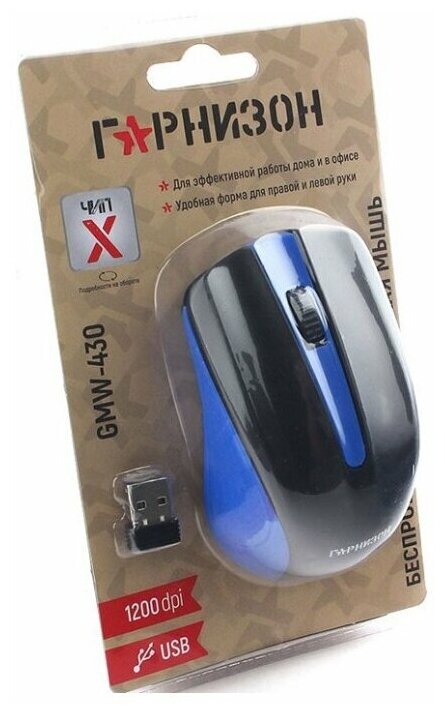 Мышь беспроводная Гарнизон GMW-430B, чип X, синий, 1200 DPI, 2 кн.+ колесо-кнопка, блистер 733 ₽ Подробнее