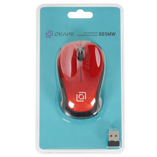 Мышь Oklick 665MW, оптическая, беспроводная, USB, черный и красный [1025135]