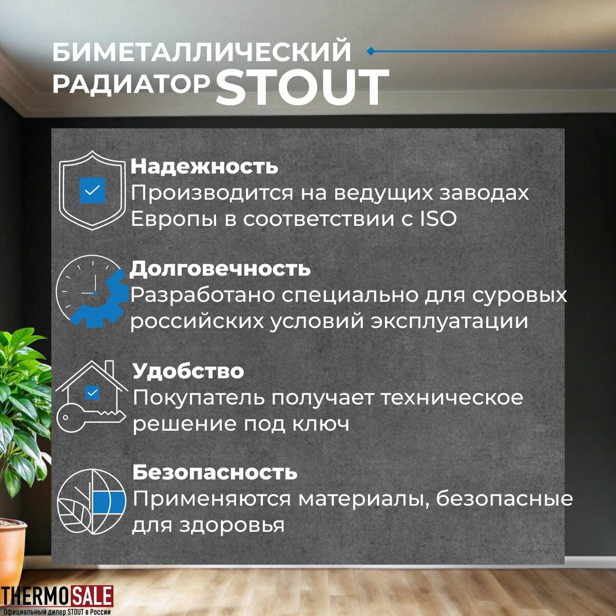 STOUT Space 500 4 секции радиатор биметаллический, боковое подключение