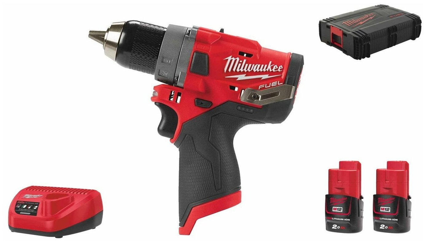 Шуруповерт Milwaukee M12 FDD-202X Fuel 4933459816 (с 2-мя АКБ, кейс)