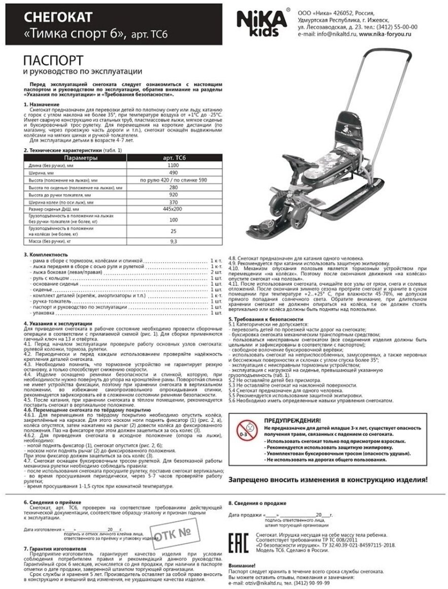 Снегокат Nika "Тимка Спорт 6" - 100 килограмм нагрузки С