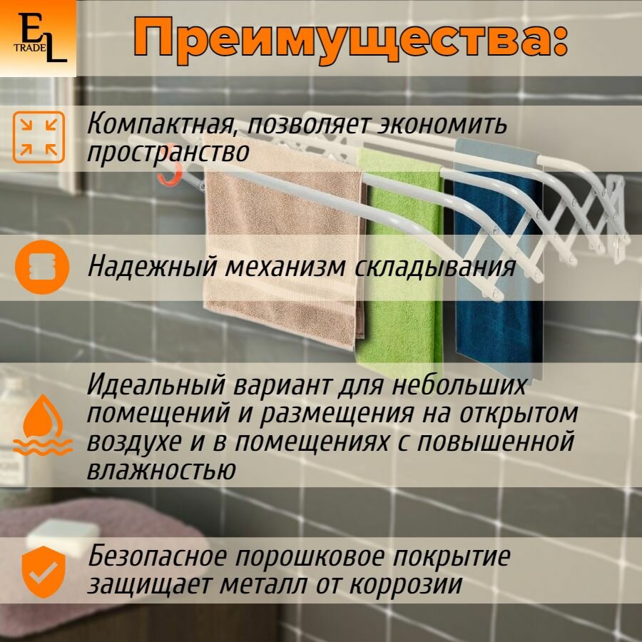 Сушилка для белья Сушилка для белья настенная раздвижная гармошка 90 см, 10 кг