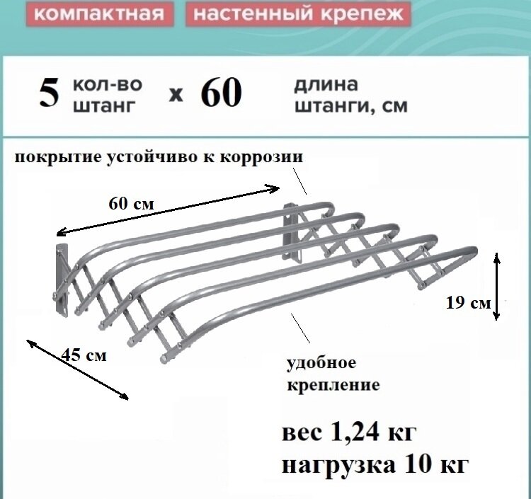 Сушилка для белья настенная 60 см, металл, серый