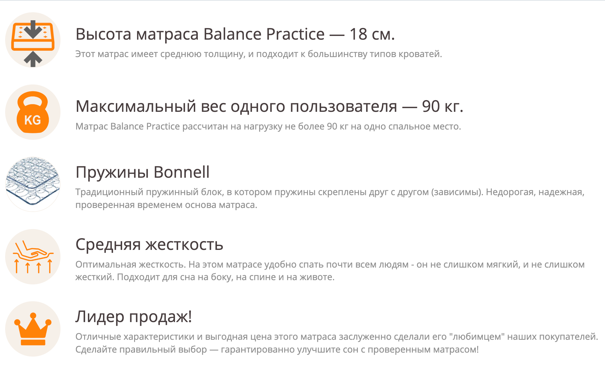 Матрас Balance Practice 180х200, пружинный, средней жёсткости,18см