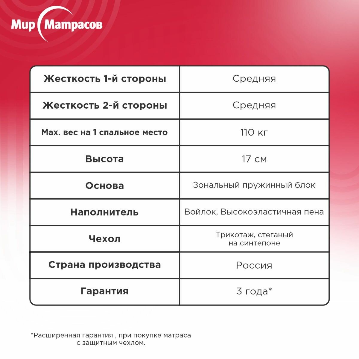 | Жесткость | средняя / выше средней (3/4), двусторонний |